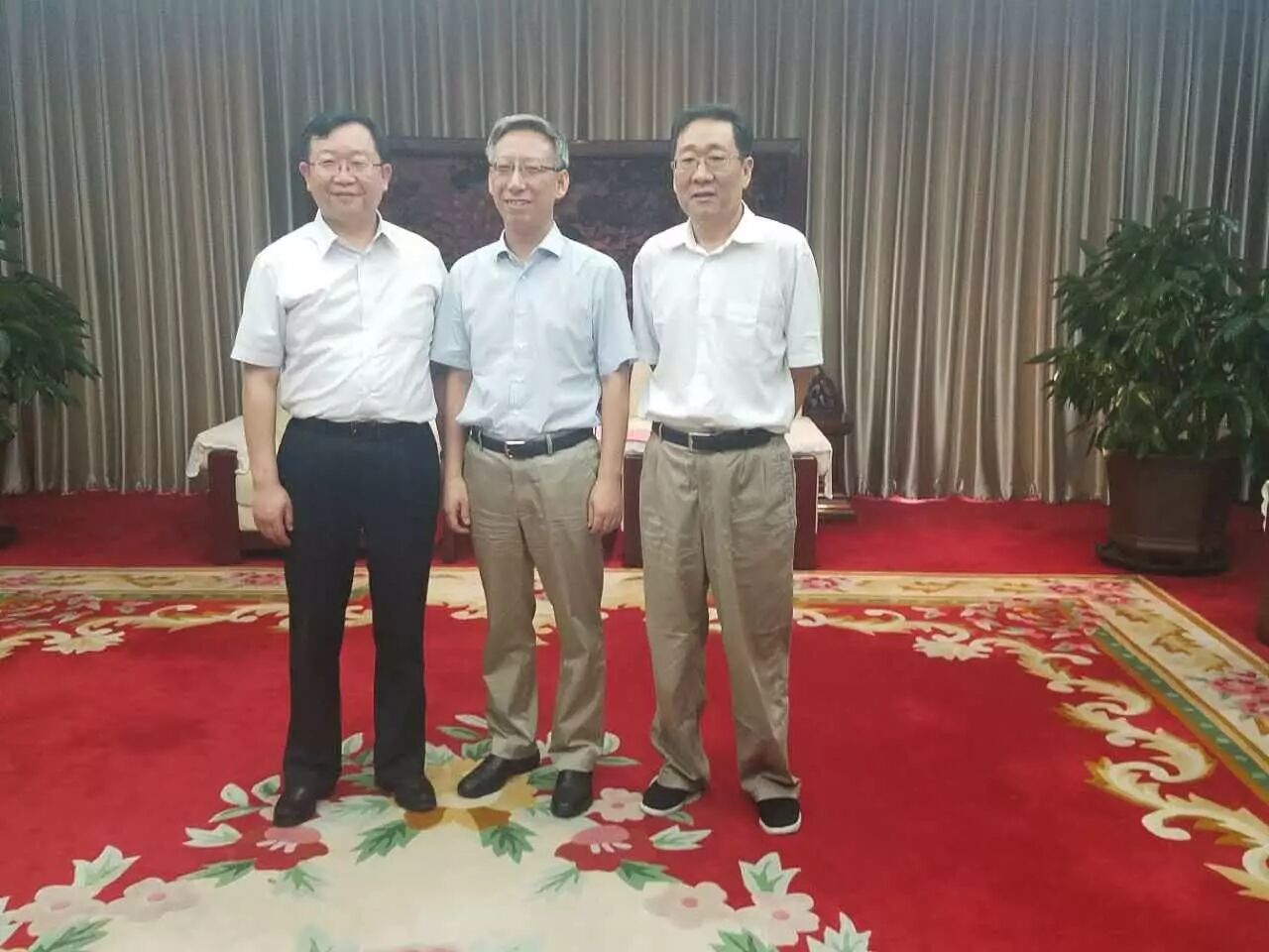 杨效宏主任和中华全国供销合作总社党组成员、理事会副主任、中国供销集团有限公司党委书记、董事长杨建平、中国供销集团有限公司党委副书记、总经理杨凤禄合影